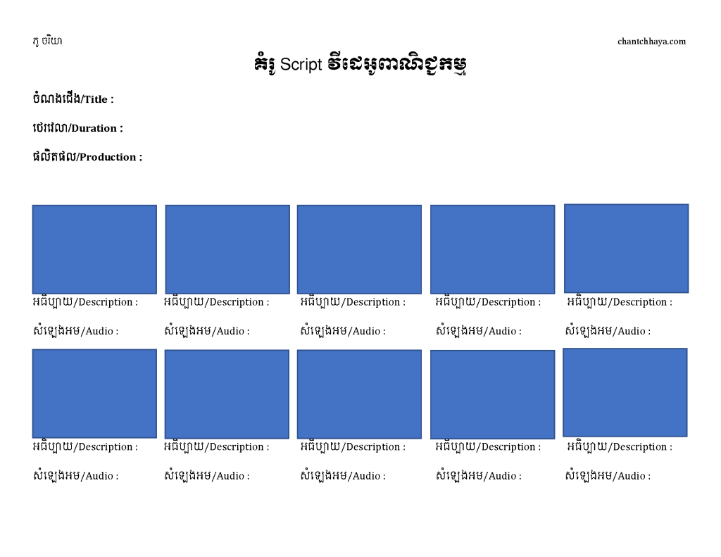 របៀបសរសេរ script នេះមិនមែនជារបៀបធ្វើទួទៅទេ។ វាជារបៀបដែលក្រុមហ៊ុនដែលខ្ញុំធ្លាប់ធ្វើការរៀបចំ និងតាក់តែងឡើង សម្រាប់ធ្វើគម្រោងវីដេអូផ្សាយពាណិជ្ជកម្មឲ្យអតិថិជនរបស់ពួកយើងតែប៉ុណ្ណោះ។
