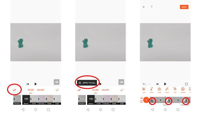 – Click on sign ‘double ticks’ on your left then click on APPLY TO ALL (if you want all your photos to have the same filter.)